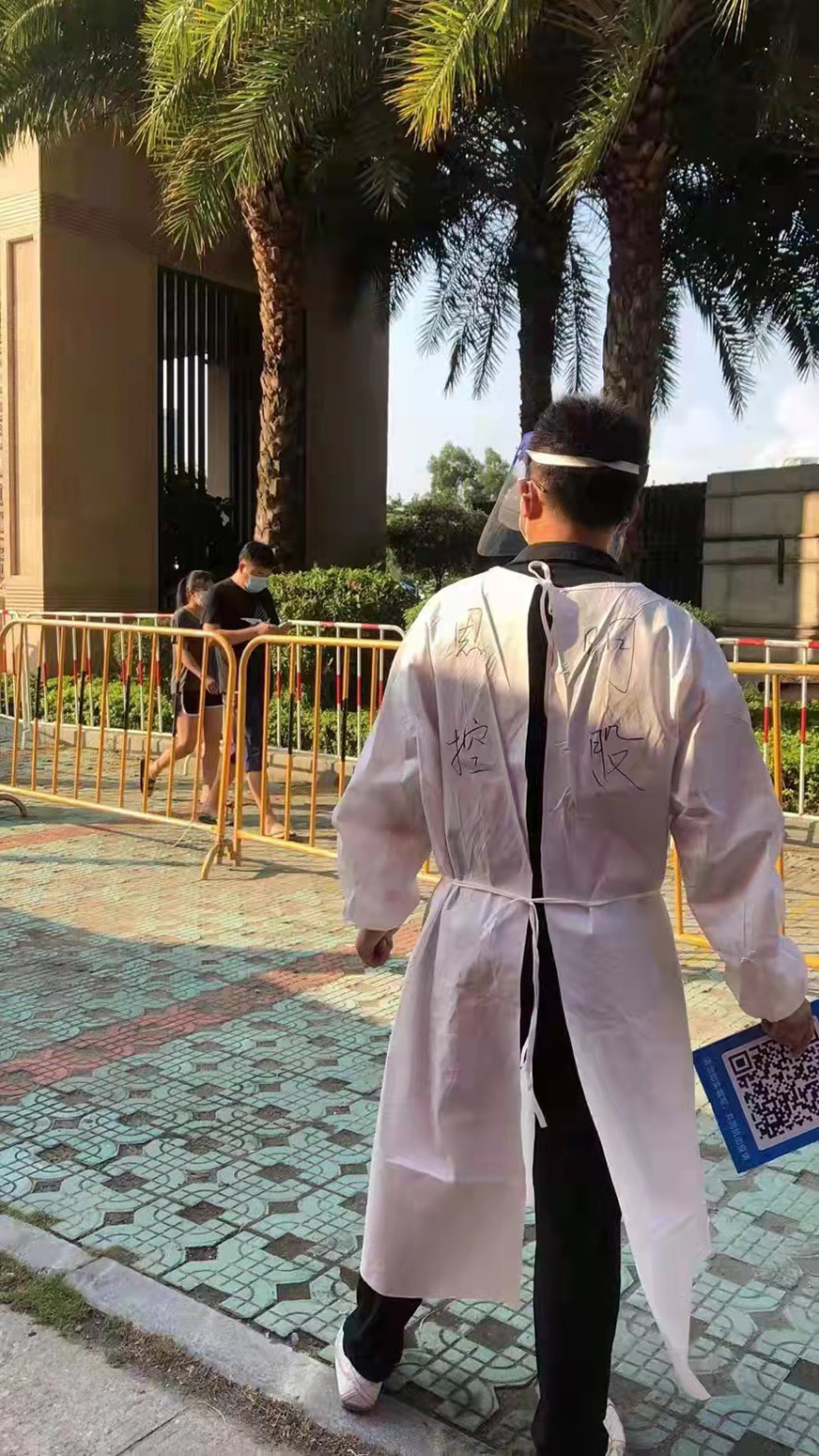 9月的廈門依然驕陽似火,志愿者們戴著口罩、面罩、手套,穿著厚重的防護(hù)服,夏日的陽光如同有火的萬箭照射在他們身上,他們恍然不覺,手上揮舞著牌子,嘴上念叨著:“請(qǐng)大家保持距離,請(qǐng)間隔一米”,“請(qǐng)出示健康碼”,“請(qǐng)?zhí)崆皽?zhǔn)備好登記碼或者身份證……”。有的市民等候得心煩氣躁了,他們極力安撫;有的市民不知如何進(jìn)行預(yù)登記,他們耐心指導(dǎo)......, 志愿者們這樣一站就是六七個(gè)小時(shí),防護(hù)服下的衣服就像在水里撈過似的,有的同事中暑了,有的同事頭痛耳鳴了,有的同事渾身酸痛、疲憊不堪,但他們都不肯休息,依然堅(jiān)持不懈,站好自己的一班崗。大家只有一個(gè)共同目標(biāo)——讓廈門重歸美好。