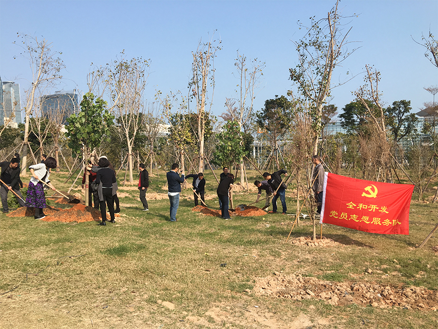 此次植樹活動是全和黨總支挖掘公司業(yè)務(wù)特色,積極探索打造特色黨建品牌,開展“支部拉手1+1”共建系列活動的一次嘗試:活動采取總支協(xié)調(diào)溝通,支部牽頭搭臺,“兄弟”支部齊助力的模式進(jìn)行。去年新成立的市政園林支部借力專業(yè)及資源優(yōu)勢牽頭“搭臺”聯(lián)系場地,修建支部為大家請來公司專業(yè)的養(yǎng)護(hù)人員當(dāng)技術(shù)指導(dǎo),“兄弟”支部積極響應(yīng),加入植樹隊(duì)伍。