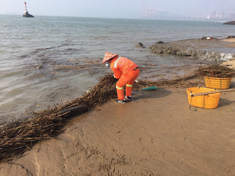 正月初三,天氣出現(xiàn)變化。一陣陣風(fēng)來,轄區(qū)內(nèi)掉滿樹葉、花朵。公司立即啟動(dòng)應(yīng)急響應(yīng),加大機(jī)掃車、保潔員對(duì)落葉密集地方的巡回清掃,加派轉(zhuǎn)運(yùn)車輛進(jìn)行收集轉(zhuǎn)運(yùn),每日平均出動(dòng)掃路車60車次。隨著沙灘上海漂垃圾的增多,公司也啟動(dòng)應(yīng)急預(yù)案,采用水線作業(yè),快速清理了各類海漂垃圾245噸。