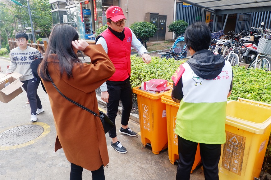 在現(xiàn)場(chǎng)活動(dòng)中,志愿者們身穿紅馬甲,頭戴小紅帽,分散在源泉山莊、“泊寓”思明?青年人才公寓的各個(gè)樓宇樓道、垃圾投放點(diǎn)等處,分發(fā)粘貼垃圾分類宣傳單,向路過(guò)的居民宣傳正確的垃圾分類方式、干濕分類的做法以及垃圾分類對(duì)環(huán)境衛(wèi)生的重要性并深入衛(wèi)生死角清理路邊的垃圾。倡導(dǎo)周邊居民從身邊的小事做起,從我做起,以良好的生活習(xí)慣,愛(ài)我家園,愛(ài)我廈門,保護(hù)我們美好的生活環(huán)境。